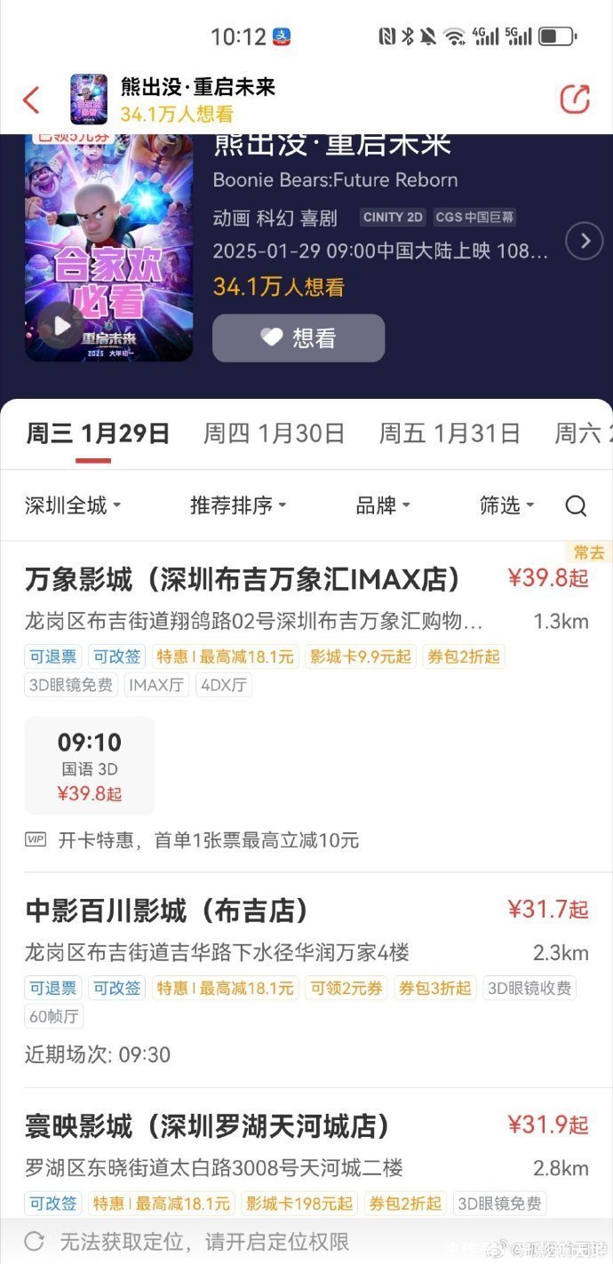 再说《熊出没》,每年票房都很稳定,片方底气足,粉丝和孩子的钱最好赚了。何必贴票补呢。